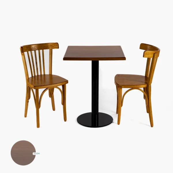 Mesa 70x70CM madera maciza lustrada con pie central.